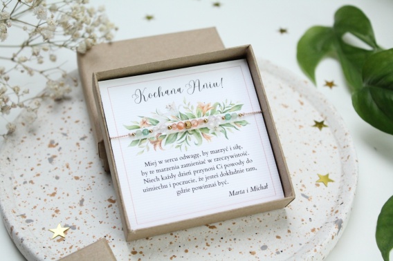 ✔️ Otrzymujesz bransoletkę nałożoną na kartę z życzeniami urodzinowymi