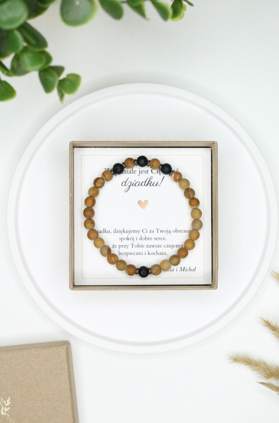 Bransoletka dla Dziadka to elegancki, symboliczny prezent przygotowany z myślą o Dniu Dziadka — prosty w formie, ale znaczący w przekazie. Do zestawu dołączona jest dedykacja, która podkreśla wdzięczność, szacunek i pamięć o Dziadku.